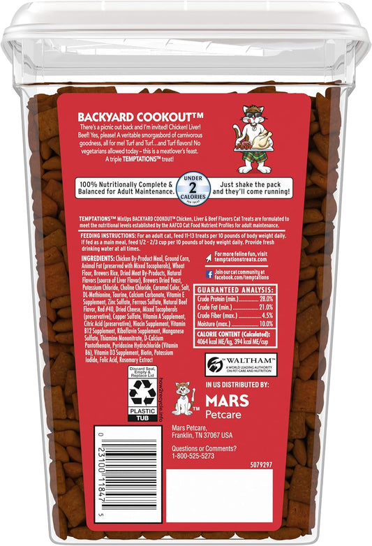 Mixups Backyard Cookout Flavor Crunchy and Soft Cat Treats, 30 Oz. Tub