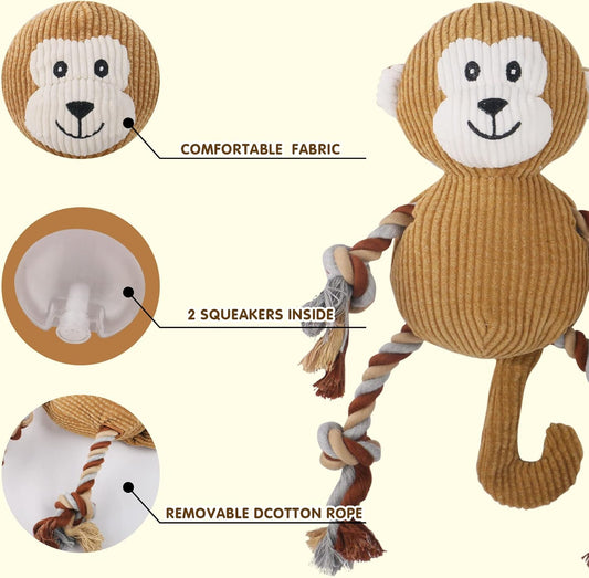 Rope Plush Dog Toy,Puppy Toys for Teething,Tug of War Dog Toy (Monkey)