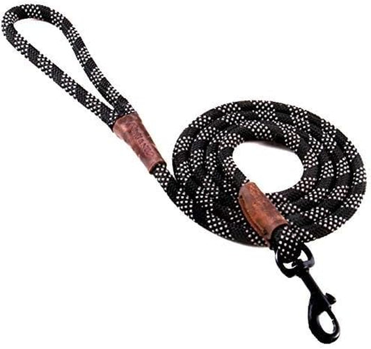 Rope Leash Reflective 6 Foot - We Donate a Leash to a Dog Rescue for Every Leash Sold (Black, 6 FT X 1/2")